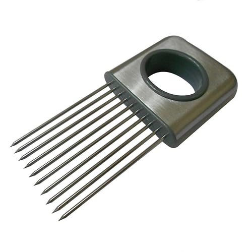 Stainless Steel Onion Holder in New Condition, Meat Vegetable Potato Apple Fruit Cutter Kitchen Tool Slicing Aid Gadget is best for youEating healthier is immensely important in today's fast-food society, but sometimes you don't have the time to create healthy, delicious meals in the kitchen because of your busy schedule. That's why we created the Avaloon vegetable holder. Simply pierce the onion with the stainless steel prongs, and slice between them to create even slices. Make sure to use this tool to keep your hands from bad odor after cooking with onions and to protect your hand from being cut or scraped. Good for Beginner, who are just less experience to chop things, perfect to protect your hand from being cut or scraped. Hand washing recommended.