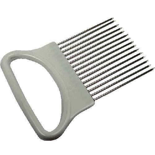Generic Onion Holder Slicer is best for youOnion holder features unique stainless steel prongs that allow you to hold & slice onion hands-free and Dishwasher safe Onion slicer guide has large comfortable oval handle designed to prevent cuts & scrapes Holds & slices uniform sections of tomatoes, potatoes, cucumbers, carrots & even hard-boiled eggs! Great for right or left-hand users - Rust-resistant - Hand-wash - Comes with odor remover attachment