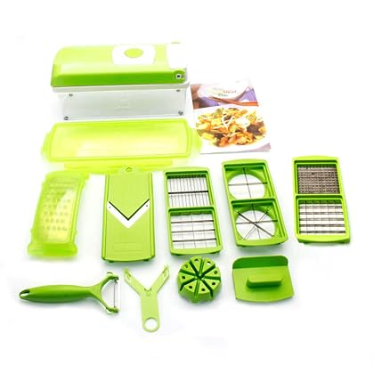 New 12 in 1 Slicer Vegetable Fruit Peeler Dicer Chopper Nicer Grater Stainless is best for youIntroductions: Versatile and truly convenient, the Multi-functional Vegetable Chopper Dicer Slicer kitchen tools that help to make vegetable slicing, peeling, dicing, and chopping quick and easy. With a transparent non-skid container of matching size, you can place cutters and peelers on it for worry-free cleaning. Stainless steel blades are durable for long-term use. With such great design, it is definitely a must-have in every family. Compact size allows for easy storage. Don't hesitate to buy now! Features: 1. Useful kitchen tools help to make vegetable slicing, peeling, dicing, and chopping quick and easy 2. Transparent non-skid container of matching size lets you place cutters and peelers on it 3. Easy to rinse clean 4. Stainless steel blades are durable for long-term use 5. Compact size allows for easy storage Specifications: 1. Material: Plastic 2. Color: Green 3. Dimensions: (10.43 x 5.12 x 4.33)' / (26.5 x 13 x 11)cm (L x W x H) 4. Weight: 30.94oz / 877g Package Includes: 1 x 12 in 1 Slicer