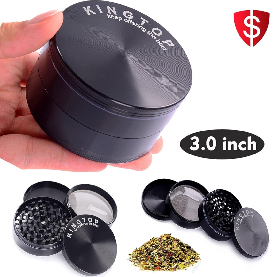 4 Piece 3 Inch Black Tobacco Herb Grinder Spice Herbal Zinc Alloy Smoke is best for youMakes your material more potent. By grinding up your herbs into smaller, more consistent pieces, you'll be able to maximize the surface area and will give you an even burn. Save Money. Since grinding your material makes it more potent, you'll be using less of it and get the same, if better, effects. Faster. Grinding literally takes half the time it takes to grind it up by hand. Make exciting herb blends and grind your own tobacco. A must have grinder for your home !
