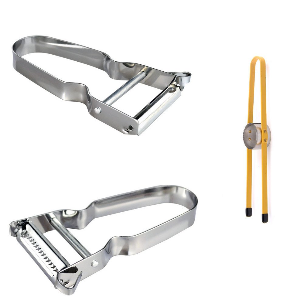 FEELING WELL Kitchen Tool Kit Vegetable and Fruits Peeler 2 Pack with a Free Corn Separator is best for youSomeone who likes kitchen must love life. Some small kitchen tools could help you manage your kitchen life better. The peeler kit we produce is a good friend to help you prepare a healthy dinner for your family. This peeler kit contains 2 peelers with different blades so that you can choose one of them for specific needs. The peelers are made of food grade stainless steel so that they could be used for long term and no harm to body. The construction of the peelers is designed ergonomically and easy to store. In addition, we designed a secret weapon which is a useful corn separator for you for free. Package includes: 1xPeeler with plain blade 1xPeeler with teeth blade Free item: 1xCorn separator