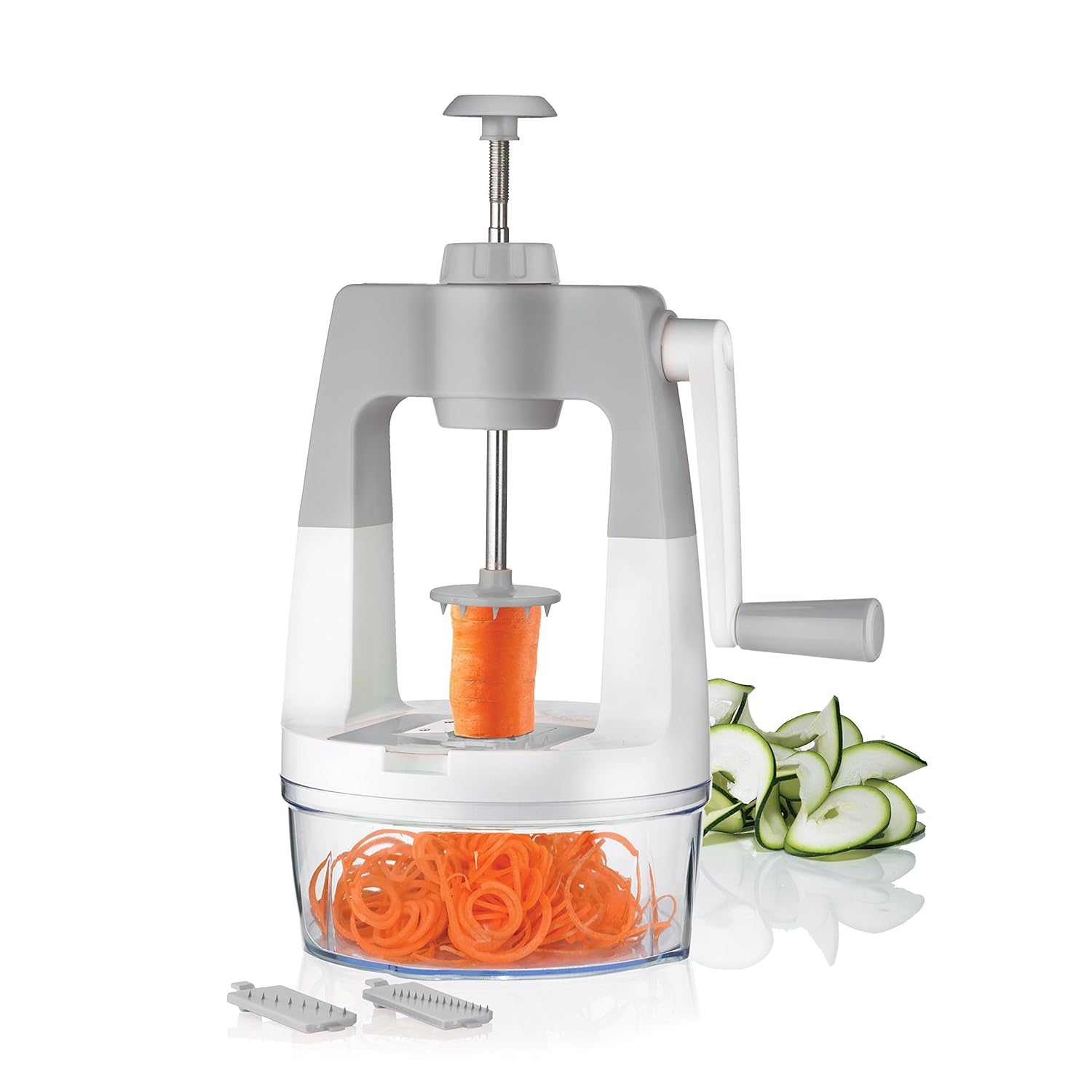 • The ScharfPro Vertical Self-Pressure Vegetable Spiralizer is a