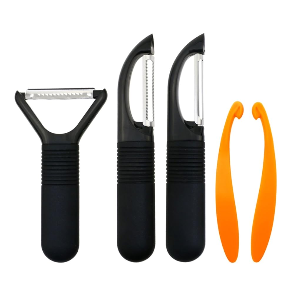 • The GikPal Fruit Vegetable Peelers - 3 Piece Peelers Set (Straight, Serrated, Julienne Blades) - Razor-sharp Stainless Steel Blade Silicone Handle included 2 Piece Citrus Peelers (orange),Set of 5 is a