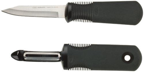 OXO Good Grips 2-Piece Peeler/Parer Set is best for youProduct Description The OXO Good Grips Peeler/Parer Set features two outstanding tools together in one set. The Good Grips Swivel Peeler is simply the best Peeler you will ever try. The sharp stainless steel blade glides through the toughest fruit and vegetable skins with ease. The soft, comfortable handle cushions your hand as you peel, and is non-slip, even when your hands are wet. The Good Grips Paring Knife has a fine edge stainless steel blade that is perfect for paring and cutting. The handle is also soft, non-slip and comfortable to use. Amazon.com For peeling a Granny Smith apple or a fruit with a tougher skin, the swivel peeler by Oxo is an essential tool. Its rotating, flexible stainless steel blades contour to almost any surface. It's got an oversize handle opening for hanging storage, and its built-in potato eye remover lets you carve out blemishes without digging. The blade size and excellent handle make the paring knife equally essential. With a sharp, tapered stainless-steel blade, it's designed for smaller jobs, slicing through fruits and paring vegetables with ease. The Good Grips line features durable, nonslip flexible handles on every product. Ergonomically designed to fit the palm comfortably and softly, the pressure-absorbing processed rubber handle puts less tension on the hands, while providing an outstanding grip. Made from the same material as dishwasher gaskets are constructed of, the handles are slip-proof, wet or dry, as well as dishwasher-safe. Good Grips products are moderately priced and have won the Tylenol/Arthritis Foundation Design Award. --Laurie Notaro