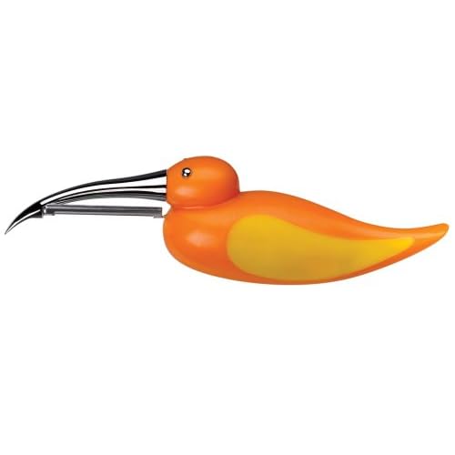 Animal House Bird Peeler is best for youProduct Description Boston Warehouse has created fun in the kitchen with their new Animal House products. The everyday basic kitchen gadgets are built for serious cooking¿with a smirk. Forget flying¿this bird feels as if it was born to peel your veggies. Ergonomic grip feels like an extension of your hand¿stainless steel blade. Amazon.com The bright colors and whimsical postures of Animal House utensils turn any kitchen into a zoo. Kids especially enjoy helping out when they get to use a monkey vegetable peeler or toucan can opener. Requiring some adult supervision, this peeler takes the shape of a sitting (or floating) orange and yellow bird. Its long, pointy stainless-steel beak works well at removing eyes and blemishes from potatoes, and the stainless-steel blade swivels to adeptly peel round surfaces. The body and head, complete with eyes, forms an ergonomic, non-slip handle. Not only does the bird peeler get the job done, but it can bring a smile during a harried day and makes a great gift along with other fun utensils from the Animal House menagerie. After use, the peeler is best washed by hand. --Ann Bieri