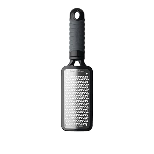 FINE GRATER #44002 by MICROPLANE MfrPartNo 44002 is best for youColor:Black Finely grate everything you need for dinner with the Microplane Home Series black fine grater. This is the perfect grater for zesting citrus or finely mincing garlic or ginger, and the blades are especially sharp to guarantee easy grating. There is a hard acrylic frame around the metal that prevents scratches to your countertop, as well as a large handle that allows for a firm grip. Made in the USA and dishwasher safe for easy cleaning, it has a slightly curved grating surface that makes for easy and comfortable usage.12' L x 3' W x 3/4' H
