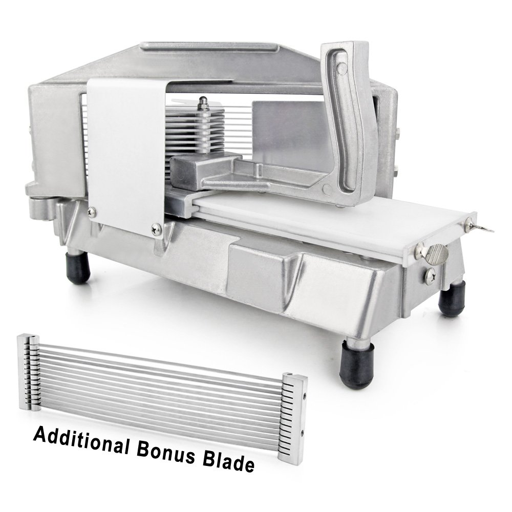 New Star 39702 Commercial Grade Tomato Slicer, 3/16-Inch is best for youAre you and your prep staff coring and slicing tomatoes by hand every single day? Not only can slicing and dicing be a possible hazard, but inconsistent cuts can also add to food cost. With the aid of a New Star tomato cutter, your tomatoes can be perfectly sliced every time. Complete with stainless steel blades, pushing block, and built in cutting board you'll be surprised you didn't acquire one of these sooner.