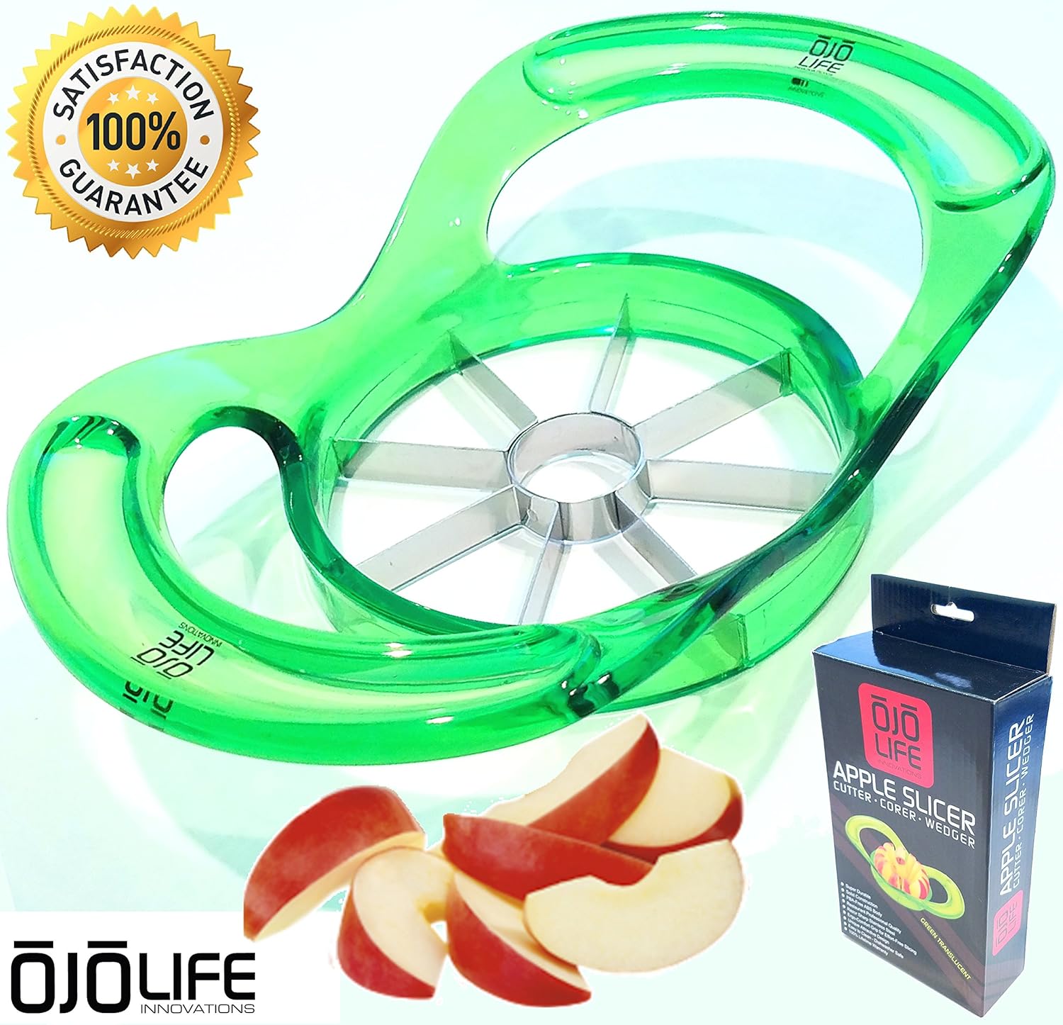 Professional Duty Apple Slicer - Corer - Wedger - Unique Translucent Green - Multi Function Divider by OjoLife Innovations - Razor Sharp Stainless Steel Blades - PBA Free - Ergonomic Low Profile is best for youHow many kitchen gadgets have you purchased throughout the year only to have it become part of a growing collection of latest and greatest thingamajigs? Well, OjoLife Innovations Apple Corer and Slicer will be the start of useful, convenient and innovative gadgets that will get used often. Whether you're planning to make Grandma's famous apple pie, a nutritious fruit smoothie or just munch on a healthy snack, OjoLife Innovations is your new go-to gadget. The ease of slicing and coring without the stress of dealing with sharp knives makes it handy for children and the elderly. Our line of products are designed specifically for the busy lifestyle we lead and the quick prep that we need. This apple slicer is made of strong stainless steel material and is ergonomically designed for comfort with BPA-Free molded translucent blue plastic. The stainless steel blades are razor sharp and will stand the test of time and remain ready to slice.