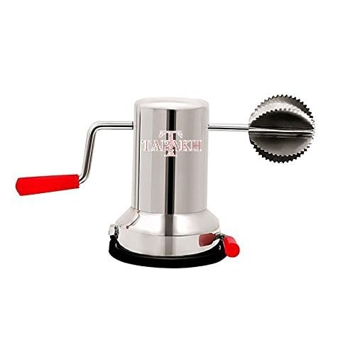 ◢ Being fully FDA compliant and Truffe test compliant.◢ Made out of strong, sturdy, long lasting stainless steel◢ Sharp blades which allow your truffles to breathe, open, and release their rich, aromatic, texture.◢ You decide how thick or slim you want your slices with the easily twist-able screw◢ Easy grip, slip free, ergonomic handle◢ Comes with an elegantly designed storable bag branded with our unique logo for safe, strong, everlasting protection.◢ Lasts a very long time, so no need to worry about replacements!◢ Can use on a variety of other food textures such as soft cheese, garlic, and even mushrooms!It's the only slicer to have been built with:- Commercial Kitchen Grade Solid Stainless Steel Blades For Long Lasting Sharpness And Smooth Cuts No Matter The Use...- Durable Food-Safe ABS Plastic That's Both Non-Invasive AND Easy to Clean Up...- Smooth And Sturdy Hand Grasps So You Can Really Put Some Elbow Grease Into Your Slicing (Great For Blowing Off Steam While You Steam The Veggies)...When you first open the box that your mandoline slicer comes in you'll be excited to find:- 3 Slicing Inserts - 1.5mm (1/16″), 2.5mm (1/12″), 3.5mm (1/8″)- 2 Julienne Inserts - 3.5mm (1/18″), 7mm (1/4″)- Safe Storage Rack- Slicing Guard with Stainless Steel Prongs- Instructions Manualthe Tabakh TCS-101 Coconut Scraper Peeler/Shredder with Vacuum Base, Stainless Steel This spiral slicer can be easily disassembled and washed under warm water with mild detergent or placed on the upper rack of a dishwasher. The blades should be removed and washed similarly. Be cautious when washing the blades, as they are very sharp and should not be touched directly. Note that the two blades can be stored in the storage compartment and the third blade can remain in place.