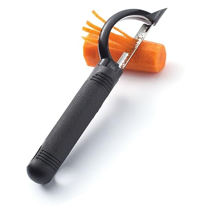 Messermeister Pro Touch Julienne Cutter, Black is best for youColor:Black Messermeister, featuring premier German cutlery, has roots in both Germany and Australia. Today, Messermeister operates as a U.S. company that strives to provide the highest quality of cutlery and culinary tools to both food-service professionals and home. We are committed to designing new and innovative products and sourcing the world to find the very best quality at the right price for the market. Messermeister products are all fully warranted for the life of the user against defects in materials and workmanship. The Messermeister 'Pro-Touch' series of culinary tools are manufactured from a stainless steel called AISI420. They feature oversized and ergonomic santoprene handles that won't slip when wet. This Messermeister julienne peeler features a double stainless steel blade that swivels and conforms to all shapes of fruit and vegetables. This julienne peeler is best used on vegetables to create matchstick cuts and has a pointed end to remove blemishes. Use with a right of left hand. Messermeister tools are consistently rated at the top in comparison to other brands for function, quality and ease of use in the kitchen.