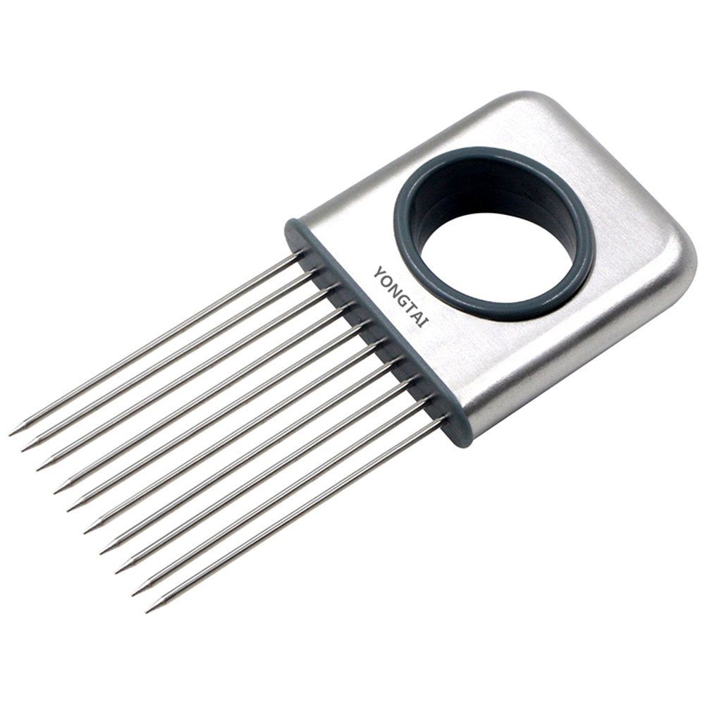 Best Onion Holder Tomato Slicer Meat Tenderizer Stainless Steel Kitchen Gadgets Vegetable Tools Cooking Tool Kitchen Accessories is best for you1. It features ultra-sharp stainless steel tines that pierce even the hardest vegetables like carrots & potatoes. Just place your blade between the tines and slice away! 2: The tines are evenly spaced across the tool so even hard-boiled eggs are cut into even sections.3: The onion holder also comes with an attachment that helps remove any odor from your hands when you're done - No more onion smell on your hands! 4: This quality food chopper is rust-resistant so it's built to last.5: Easy to hand wash.6: WANT TO SAVE TIME AT MEAL Prep?: Here is the solution! This multi-use kitchen gadget allows you to chop uniform slices of onion without your hands gripping the onion. It features ultra-sharp stainless-steel prongs that pierce and hold even the hardest vegetables like carrots & potatoes. Onions can be sliced extra thin by inserting the knife twice between each prong. It can be used for many other vegetables and fruit like tomato, potato, cucumbers, carrots ,etc. 7: SATISFACTION GUARANTEE -We love our customers and are obsessed with customer satisfaction. If for any reason you don't absolutely adore your new onion holder, just send it back our way for a full refund - GUARANTEED