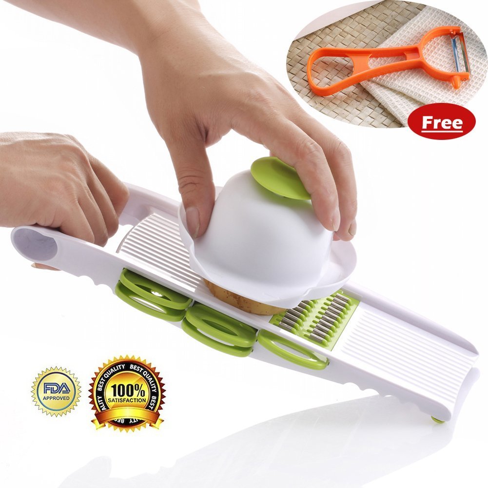 - SAFEST SLICER ON THE MARKET: Built using Food-Safe ABS plastics to keep your food clean & chemical free, Slip-Resistant Rubber Footing to prevent slippage accidents, and finger saving Slice guards all in one slicer!