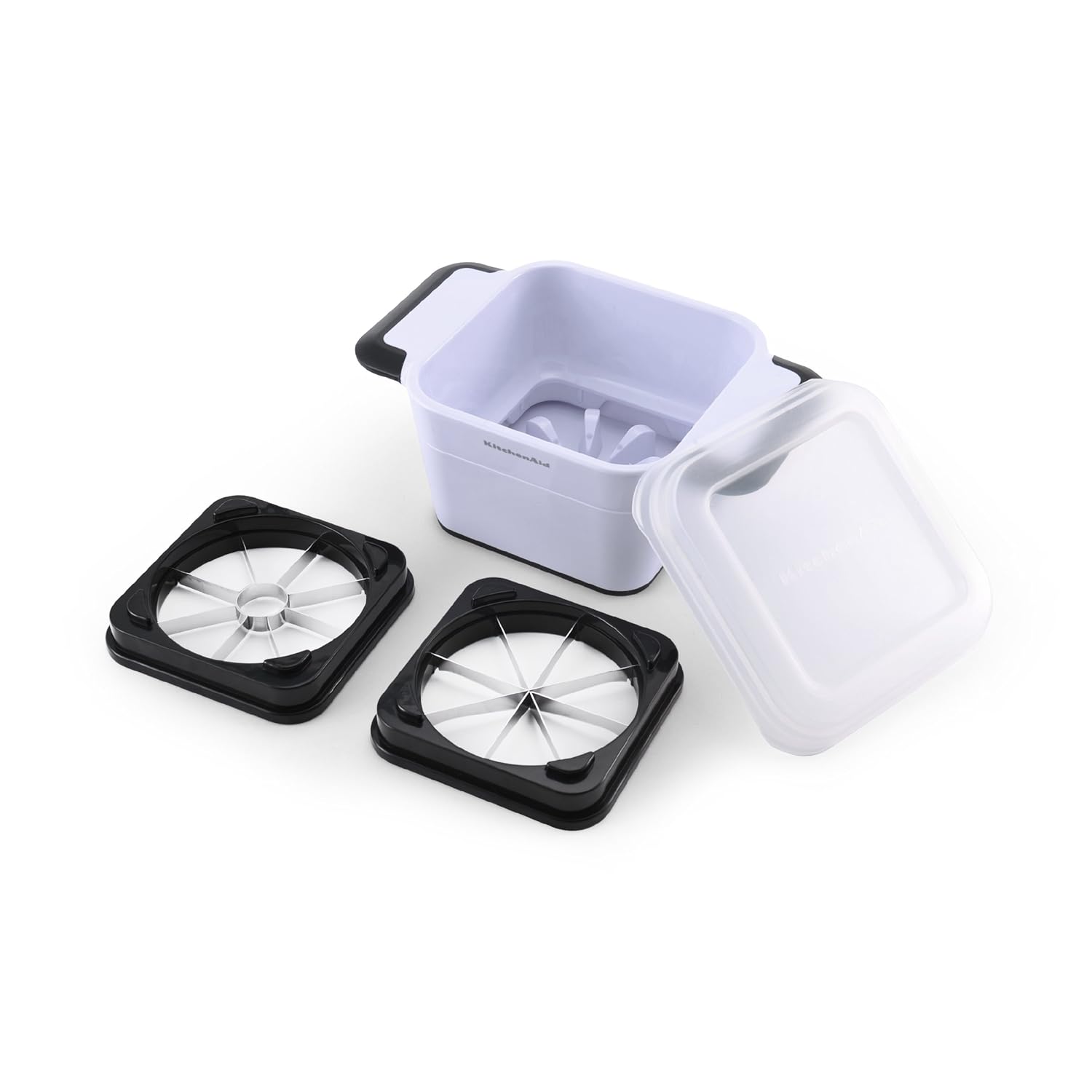 KitchenAid Gourmet Fruit Slicer-Wedger (Black) is best for youCut down on meal prep time with the KitchenAid Gourmet Fruit Slicer-Wedger. The sharp, stainless steel blade resists rust. Interchangeable cartridges allow you to slice various fruits and cores apples. A specially designed, micro-serrated blade allows the wedging of citrus fruits. An included lid converts this slicer into a storage container. This fruit slicer is completely dishwasher safe for easy cleanup.