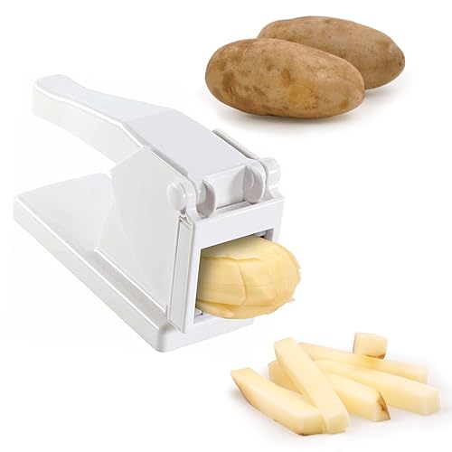 French Fry Cutter by Cobble Creek Potato Press Slice Fresh Restaurant Fries is best for youNever go without your favorite side dish - even at home - again with the French Fry Cutter. Make fresh, delicious, restaurant-quality french fries easily. Simply load a potato into the slot and use the lever to pass potatoes through the blade and into perfectly shaped fries. Feed every craving for these delicious delectables at every whim without every having to leave the house. Easy, one-handed operation Remove cutting screen for cleaning Metal and plastic materials 10' x 3.5' x 5.5'