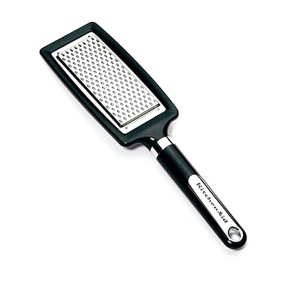 KitchenAid Cooks Flat Grater, Black is best for youColor:Black The design of the flat grater produces perfect results with cheese, chocolate, vegetables, and more. The grating surface is quality-constructed from stainless steel, and the entire grater stores easily in a drawer. Dishwasher safe for simple cleaning.