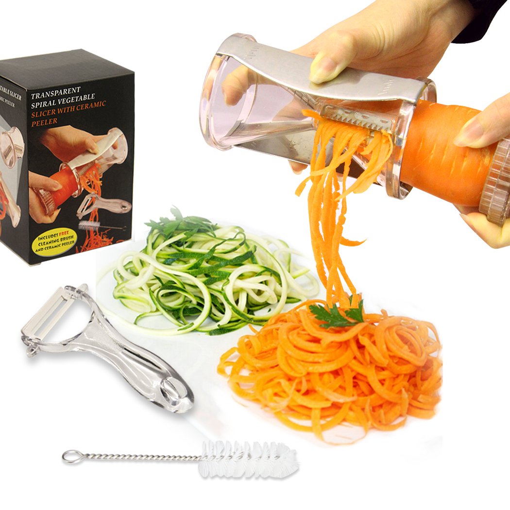 Handheld Vegetable Spiralizer — Japanese Stainless Steel Blades — 2-in-1 Handheld Vegetable Cutter — Create Healthy, Delicious Vegetable Noodles — Includes Ceramic Peeler & Cleaning Brush. is best for youProduct Description: Create healthy, delicious meals by including homemade vegetable noodles! We’ve become so busy in today’s technological world that we’re settling for eating unhealthy more often than not. From fast food to fried food, each spoonful just adds unnecessary cholesterol and fat to our diets. That’s why you need the best kitchen tool today for eating healthy—the Handheld Vegetable Spiralizer by Master Class Products. Our magic spiral slicer gives you the ability to create health, delicious spaghetti or julienne-style noodles out of your favorite vegetables. Just like in a zucchini, a carrot or a squash, give it a few turns, and within seconds you’ll have healthy noodles to add to any of your favorite recipes. Healthy cooking has never been easier! Whether you’re just looking for new recipes, or have finally decided to be more health conscious cook, our Handheld Vegetable Spiralizer is perfect for reducing calories, watching your carbs and still enjoying delicious food. Here are just a few of the features of our Handheld Vegetable Spiralizer. 2-in-1 spaghetti or spiral maker Premium Japanese stainless steel blades Works with most vegetables (even Gluten free foods) Dishwasher safe Includes a free ceramic peeler and cleaning brush Add this to your cart now and start eating healthier, more delicious meals this week! Spiral Vegetable Slicer - Veggie Spiral Slicer