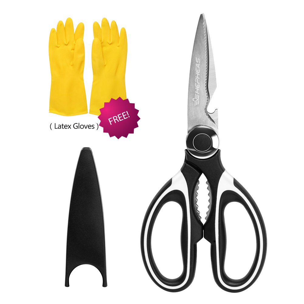 HEPHEAS Kitchen Shears with Soft Grip Handles-Best Multi-Purpose Utility Scissors for Chicken, Poultry, Fish, Meat, Vegetables, Herbs, Meat and BBQ's- 30 day Satisfaction Guarantee. is best for youColor:scissor Description: Outdoor functions as well. It can be used outdoors too! HEPHEAS kitchen scissors can be taken to fishing expeditions, camping trips, picnics and barbecues in the backyard for a whole range of different purposes. Features: Size: 8.26X 3.5 inch Weight:121g Material: High quality stainless steel and PP plastics. Multipurpose: - Cutting any meat into certain sized pieces - Removing fish scales - Opening packaging cartons and cans - Crack nuts Package Included: 1x Hepheas Kitchen Shears 1x Plastic Blade Guard1x Kitchen gloves