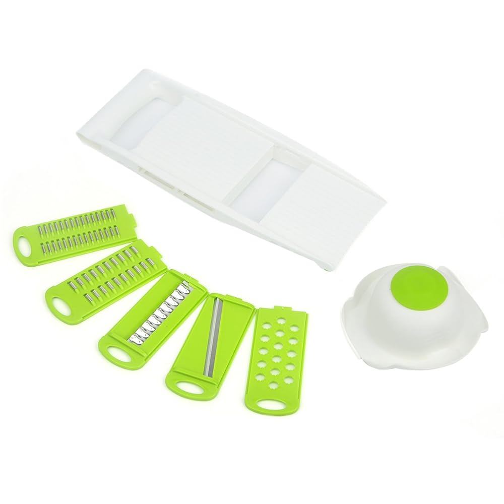 Amagoing Mandoline Slicer for Vegetable Julienne Food is best for youAmagoing Multipurpose Mandoline Kitchen Slicer Set--- bring a safer and more efficient way to your cooking and dicing. Includes : 1 X Detachable Mandoline Slicer. It is a tough ABS plastic frame. 1 X Safety Hat. Cutting hat fixes food and offers protection whilst cutting. 1 X 3mm (0.118in) Julienne Blade.Great for carrots, french fry and other fresh vegetable. 1 X 2mm (0.079in) Julienne Blade.Meet your need for thin Julienne food. 1 X Straight Slicer. Perfect for slicing fresh cucumber or thinly cut potato chips! 1 X Grate Flower Blade. To cut beautiful flower slices, you need to rotated the food for 90 degrees,then cut again,repeatedly every time. 1 X Grinding Blade. Ideal for grating garlic, ginger,onion etc! Key Features: Professional: Include 5 different blades! You can cut food into multi shapes you want effortlessly ! Bring a lot of fun to your home cooking! Time Saving: Cut vegetable, fruit more quickly and averagely than kitchen knifes. Also easy for cleaning and storage. Safe: Protective hat keep your fingers away from hurt by blades. Healthy : Keep the freshness and nutrition in vegetable and fruit. Enjoy healthy food with your family or friends. Durable : Made with strong ABS material which can last a long time. Warranty: 18 months warranty and life time customer support. Buy it without any hesitate! Important instructions: 1. Watch out for these SHARP blades at all time! Keep this tool away from your CHILDREN and avoid heat. 2. Hand wash thoroughly and air dry before first use. 3. When the vegetable is small or becomes smaller (lower than 2.5 inches), you have to use the PROTECTIVE SHIELD(Safety Hat). For same 4. Do not use it to slice HARD or WITHERED vegetable, fruits or other HARD product.