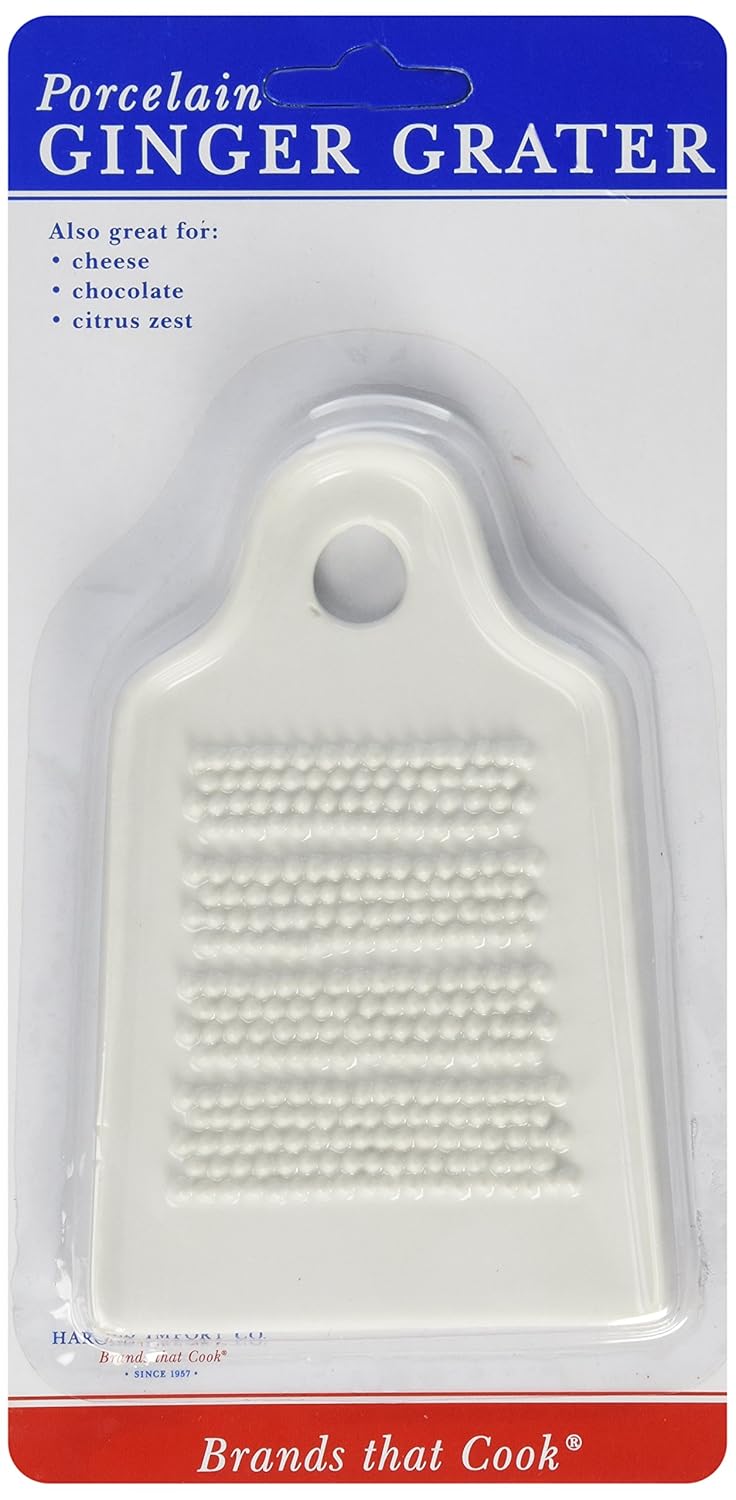 Harold Import Company Ginger Grater, Fine-Quality Porcelain, 5.5 by 3.5", White is best for youColor:White HIC's Fine-Quality Porcelain Ginger Grater makes easily work of grating fresh ginger root. Add a warm and spicy aroma and flavor to foods and beverages. Great for ginger tea, sauces and dressings, or add to salads, stir fry, desserts, and more. Fresh ginger is most aromatic when prepared immediately before use. Grate the amount needed and store the rest of the ginger root in the refrigerator. HIC's Ginger Grater easily rakes and shreds the fibrous ginger root. Place ginger against the grater while steading the grater's wider bottom against a countertop or tabletop for a more vigorous grating action, or inside a mixing bowl to collect grated ingredients. Quickly grate ginger for tastier baking recipes and comforting home cooking. HIC's Ginger Grater performs the tasks of multiple kitchen tools to make food preparation a breeze. It doubles nicely for lemon zest, breadcrumbs, carrots, radishes, apples, or use as a cheese grater for hard cheese, like Asiago, Parmesan, Pecorino or Romano. Made from fine-quality porcelain, HIC's Ginger Grater is durable and will never rust or transfer odors or flavors between uses. Dishwasher safe for easy cleanup.