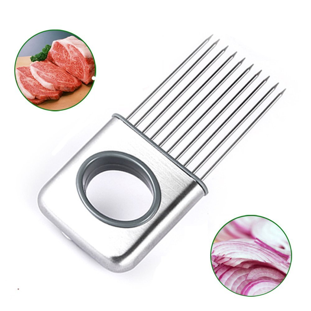 • The Hovisi Onion Holder Vegetable Potato Cutter Slicer Gadget Stainless Steel Fork Slicing Cutting Chopper No More Stinky Hands is a