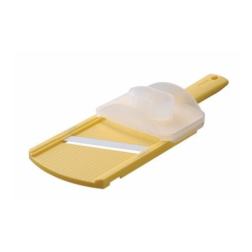 You buy Kyocera Double Edged Mandolin Slicer, Yellow with Coupon : AOO30 will be discounted 30% price an easy-to-use, handy tool that makes zucchini spaghetti, cucumber ribbon strands, curly fries or long, spiral apple strands. It comes with three blades: a shredder blade (small holes), a chipper blade (large holes) and a straight blade. A storage compartment beneath the frame stores two blades and the third blade comes already in place.