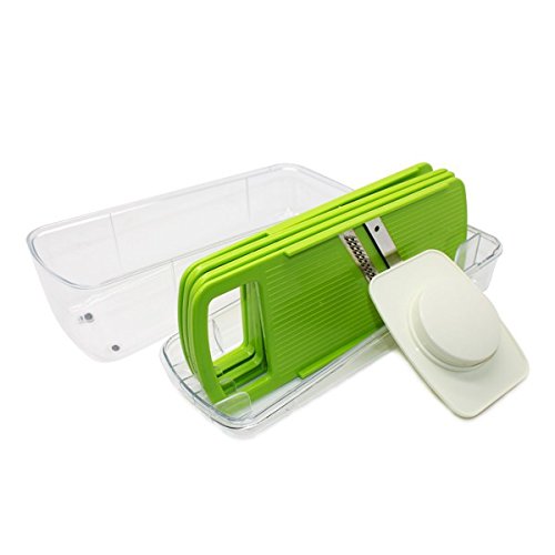 Mandoline Slicer By Yoroi - Vegetable Slicer - Stainless Steel Blades - Food Safe Plastic - Compact, Lightweight & Versatile is best for youPrepare healthier, more creative meals while reducing your food preparation times with a mandolin slicer from Yoroi Eating healthier is extremely important in today's fast-food society, but sometimes you don't have the time to create healthy, delicious meals in the kitchen because of your busy schedule. That's why we created the Yoroi Mandoline Slicer. Our mandolin slicer allows you to create healthy snacks, meals, and dishes in just seconds. Designed with premium stainless steel blades, our slicer can cut, chop, slice and Julienne fruits, vegetables and cheese so fast you'll quickly notice how much more time you spend simply enjoying the food and the people you're sharing it with. Whether you're a top flight chef or a novice in the kitchen, our slicer gives you the ability to create French fries, Au Gratin potatoes, salads, vegetable snacks, salsa, fruit salad and more; and all with a quick flick of the wrist. It's time you started eating healthy by creating exciting meals and snacks that your family will love.