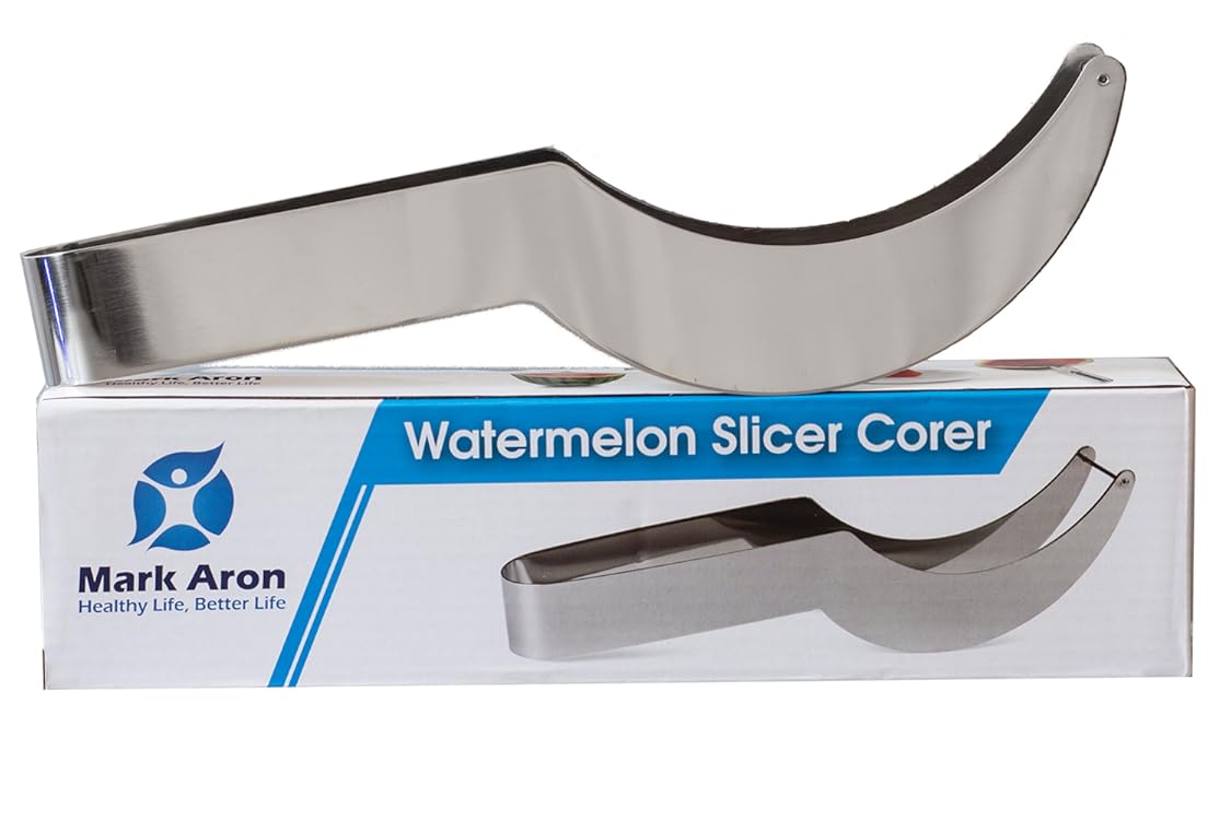 Mark Aron Watermelon Slicer and Fruit Corer – Versatile Home Kitchen Tool – Make Kid Friendly Edible Arrangements, Fruit Snacks and Summer Treats – Easy-to-Use Fruit Knife is best for youLearn how to cut a watermelon in 20 seconds and make summer juicier and more fun than ever before. There’s nothing quite like the taste of a juicy cantaloupe, mango or watermelon on a hot, sticky summer’s day. Each bite is a reminder of how family fun, healthy eating and outdoor gatherings are the best part of the year. But when you don’t have a Watermelon Slicer by Mark Aron, you could be spending more time struggling with cutting the melon and less time enjoying the laughs and smiles around you. When you get the 3-in-1 Watermelon Slicer, Corer and Server, you’ll never again have to struggle with a watermelon or fruit knife, nor will you need different kitchen utensils to get the job done right and quickly. If you’re looking for the best kitchen tools to help you and your family eat healthier snacks, make summer fun easier to enjoy and are easy to clean up when you’re done, look no further than the Watermelon Slicer by Mark Aron. Product Details: Premium Stainless Steel Food Grade Safe Materials Slices, Cores and Serves Kid-Friendly Rounded “Cutting” Edges Rubber Handle for Precision Grip Dishwasher Safe Healthier summertime treats start by clicking “Add to Cart” above and adding the Mark Aron Watermelon Slicer!