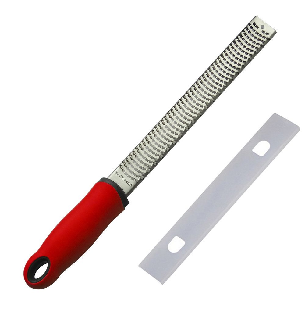 Penta Angel 304 Stainless Steel Cheese Grater Lemon Spice Fruit Cirtus Ginger Chocolate Plane Zester 13inch (Red) is best for youColor:Red 18/8 stainless steel Sharp Blade Perfect for cheese Parmesan Lemon Spice Fruit Cirtus Ginger Chocolate or more. Plastic Safety Cover to avoid any accident when you rummage through your kitchen drawer. Bud Scale Design, Non-slip Comfort Handle Materials are nontoxic, anti-fade, resistant to rust Total length:13inch The handle has hanging hole to simplify compact storage.