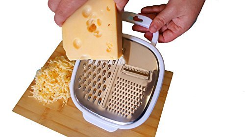 Cheese Grater Slicer , Hand Held Food Slicer Cutter Container Kitchen Tool is best for youA must in every home, office, restaurant, coffee shop, snack bar bistro, military, institutional kitchens ! Get the most value for your money with Top-Rated Professional Grade Kitchen Tools! The peeler cheese grater allows you to shred cheeses, vegetables, and other food items with speed, safely, and precision. Rest the base of the grater against a plate and grip the comfort top handle for fast, high-volume shredding. The four-sided design brings you customizable shred thickness based on the grating style you select. Color: White Product Dimensions :9.5 x 2.3 x 7.4 inches Item Weight: 8.2 ounces Shipping Weight: 8.8 ounces