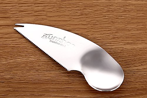 Cimostar Stainless Steel Kiwi Peeler,Fruit Knife And Spoon is best for youDetails: Material: Stainless Steel Weight: About 50g Size: About 4.4*14.8cm Features: 1.Have qualitative feeling, and corrosion resistance, not easy to rust. 2.The surface knife is made of mirror-polished. Fashion and Beautiful. 3.Can easily remove the pulp, edge smooth, delicate and polishing, it does not hurt the hand. 4.Can peel the oranges, oranges, mangoes, dig the kiwi fruit pulp, such as go to hami melon seeds.v Package Included: 1pcs X Kiwi Peeler Notice: 1.It is sharp,you should careful when you use it. 2.The colors may have difference as the different display,please understand. Please make sure you do not mind before you bid.