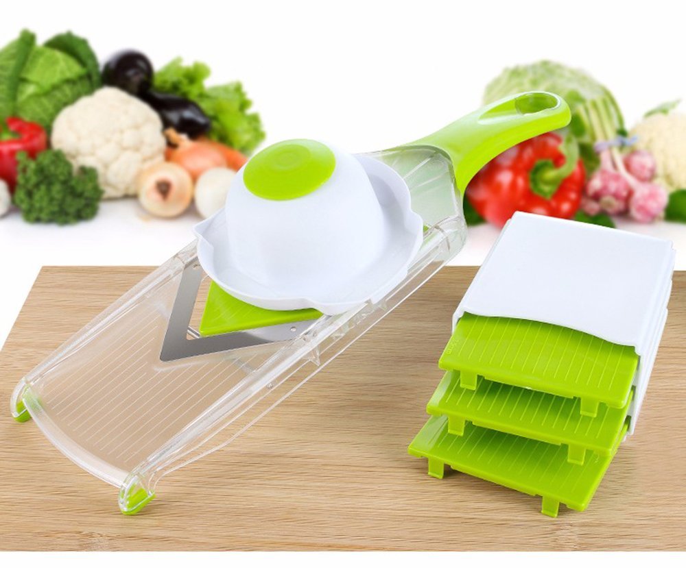 LEKOCH Premium Mandoline Slicer - Vegetable Slicer - Vegetable Chopper - Vegetable Cutter - French Fry Cutter - Tomato Slicer - Potato Slicer - Julienne Carrots is best for youIf you've ever fussed with temperamental, high-maintenance food processors, or you've been slaving away with nothing but a knife, some very lucky fingers and a cutting board, the SliceMan is for you! With four snap-on attachments, grippy silicone feet and a non-slip handle, this easy-to-use, easy-to-clean, convenient-to-store veggie slicer extraordinaire, the perfect fit for your kitchen. Slice and Dice: We equipped SliceMan with the sharpest blades we could find and enough attachments for you to tackle any slicing, dicing, julienne or chopping job. With a few flicks of the wrist, it'll make quick work of the veggies of the day, whether it's onions, tomatoes, carrots, or potatoes. (Yes, we're talkin' French fries or potato chips, but don't tell anyone!) Slice In Safety: As sharp as these blades are, safety is key. That's why we include a sturdy hand guard to keep your fingers out of the slicing zone. We also added a nice, comfortable handle that won't slip from your grasp, and non-slip feet so the slicer doesn't hop all over the counter while you're working. With the SliceMan, you can prep your meals with complete confidence. No Quibble Guarantee: We hate hassles as much as you do. That's why we've included a full 12-month no-quibble guarantee. If you're unhappy with it for any reason, just let us know and we'll promptly issue you a refund or replacement. That's what you get when you call on LEKOCH Chef for your kitchen supplies. The Whole Enchilada: With the food-safe ABS plastic chopper, four easy-switch attachments, a helpful guide and an out-of-this-world warranty, the SliceMan sets itself apart from the pack as the go-to mandoline slicer for any kitchen. Add yours to your cart today. Do you know someone else who's living in the slicing dark ages? Give a gift they'll thank you for a dozen times over!