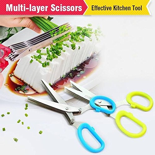 Saver Multi Layers Shredding Scissor 5 Layers Kitchen Scissors is best for youDescription: A new way to make your cooking work much more easy! 5 Layers Shredding Scissor,used to cut scallion,coriander,leeks,celery pieces,etc very quickly! Also great for cutting nori pieces when making rice balls and sushi. Features & details: Material: Stainless Steel + ABS Color: Randomly shipping Dimension: Appr.19*8cm Weight: 158g Package Included: 1 x Multi Layers Shredding Scissor Kind Note: Used mild detergent or clean water for washing. Keep dry after washing and store in dry and clean places.