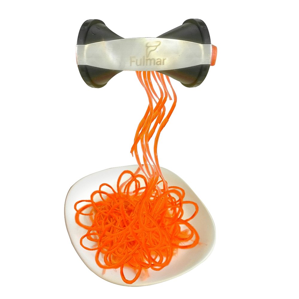 Fulmar Spiralizer-Veggie Spaghetti Maker-with FREE cleaning brush. Dual Julienne Blades Spiral Slicer . Perfect kitchen tool for making Vegetable Pastas or zoodle strips. is best for youVegetables are an important part of our daily diet and everyone should endeavor to optimize his/her intake. With this spiralizer, we are providing an extra delight in preparing and consuming your daily vegetable requirement. This spiral slicer turns vegetables into beautifully prepared meals. It is definitely a cook's companion to conjure up your favorite vegetables into endless Julienne strips. This kitchen tool is also perfect for families with children. It provides an attractive way of preparing vegetables to increase its appeal to all. This spiralizer comes with dual blades for Julienne size 2.3mm or 3.5mm. The compact size also makes for easy storage and use. HOW TO USE: -Insert the vegetable in the slicer cone and twist vegetable. This process is similar to sharpening a pencil -Maintain steady pressure and consistent angle as you twist for long curly strands -Use the slicer cap for the final few turns. The cap works best with firm vegetables -Rinse residue using the companion brush and wash by hand or in dishwasher