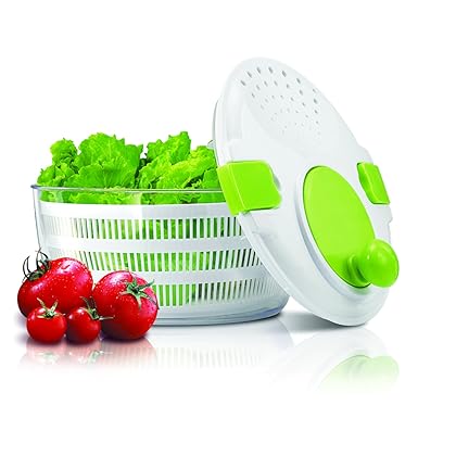 Homemaker Salad Spinner is best for youvef1003 Features: -Basket doubles as a colander for spinning extra water off lettuce or other greens. -Hand wash recommended. -Large handle for easy turning; Bowl with removable interior basket. -Rubber grip on the base. -Spinner for washing and dressing greens; Hole for adding water, dressing, or oil. Product Type: -Spinner. Finish: -White; Green. Base Material: -Plastic. Handle Material: -Plastic. Operation: -Manual. Food Compatibility: -Vegetable. Item Type: -Countertop. Soft Grip Handle: -Yes. Dishwasher Safe: -Yes. Dimensions: Overall Height - Top to Bottom: -8.66'. Overall Width - Side to Side: -9.64'. Overall Depth - Front to Back: -9.64'. Overall Product Weight: -1.8 lbs.