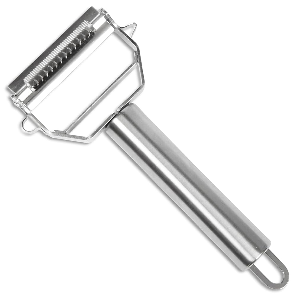 Vegetable Peeler & julienne Peeler Saves Time Peeling & Easy To Use is best for youVERSATILE VEGETABLE PEELER WITH TEETH Peel the skin off fruit and vegetables with the peeler blade on one side then turn over to slice with the other. HEALTHY SNACKS & MEALS IN MINUTES Conjure up healthy low-carb veggies meals and snacks in no time for a healthy lifestyle. The ideal kitchen tool if you are on a low-carb diet plan, weight loss diet plan, or simply have little time preparing and eating meals. SUPER QUICK PEELING Our stainless steel blades glide over contours and take off wafer thin peels limiting waste. EASY TO USE The sleek design makes our vegetable peeler easy to hold in either hand no matter the size and works in both directions. PEEL VEGETABLES FASTER OR YOUR MONEY BACK If you decide your new vegetable peeler doesn't peel faster than your old one we'll give your money back. Scroll Up, ADD TO CART And Take Our Challenge.