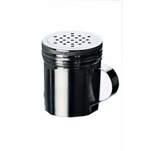 Amco Cheese Shaker is best for youThese shakers are made of heavy duty 18/8 stainless steel. The 3 mm hole sizes within the cap make this a good choice for parmesean cheese, crushed red pepper, or many other garnishes The tight fitting caps avoid accidental over-seasonings.