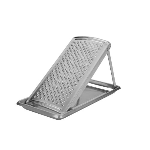 MIU Polished Stainless-Steel Parmesan Cheese Grater is best for youMIU France polished stainlesss steel cheese grater, item # 3008. Perfect for grating parmasean, pecorrino and other hard cheeses. The stainless steel holding tray collects the grated cheese. The foldable legs collapse for storage. Easy to clean, dishwasher safe. Measures: 8.5' L x 1' W x 4.25' H folded.
